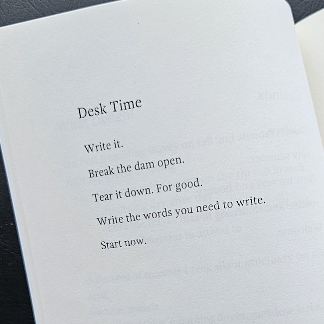 Anyway, my creative dam has been breached and creativity is flowing again. It took words to chip away at the blockage until it let go so more words can be released. Makes one want to write even more, doesn’t it? I’m back to my write-a-bad-poem-a-day routine in the morning; it feels so right for this season. That, and longhand journaling and blogging, is enough for now, and maybe always.